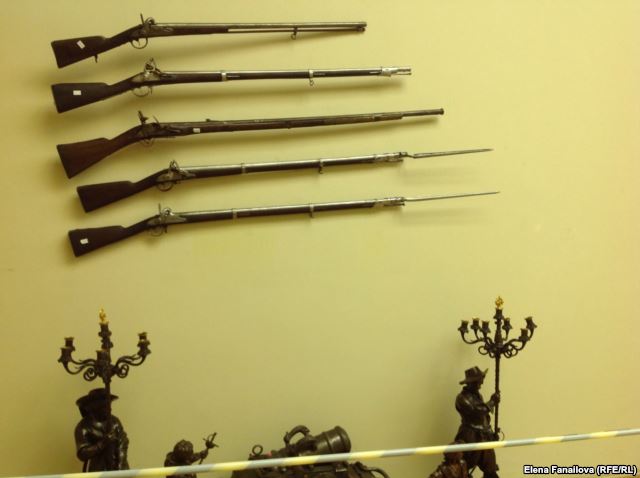 – Охота – это было любимое занятие Януковича. Там есть “Книга охотника” и “Книга воина”. В “Книгу охотника” мы сгруппировали вещи, имеющие отношение к животным. Там статуэтки с изображениями соколиной охоты, наездники, кони, собаки, носороги, крокодилы, дичь. А “Книга воина” – это собственно оружие и изображения воинов, есть одно изображение оружейника. Охота – это такой барский досуг, забава феодалов, которая как-то передалась генеральным секретарям, а от партноменклатуры была унаследована постсоветской аристократией. Коммунисты освоили барские забавы, а постсоветская квазиэлита переняла эти дивные привычки, на мой взгляд, несколько варварские. Янукович был охотником, охота для него была, скажем, как для Ельцина гольф. Поохотиться с ним – это значит „решать вопросы“, желающих очередь стояла, трудно было попасть в его компанию. Известно, что в день первой крови на Майдане он охотился в Сухолучье, одно из его охотничьих угодий, у него по всей Украине были такие угодья. Очевидно, там и хранились все его трофеи – шкуры, рога. “Книга воина” – мы поместили туда коллекцию ружей и холодного оружия. Я в этом не разбираюсь, там какие-то палаши, сабли, шпаги, рапиры, мушкетоны, различные системы ружей от 18-го до 20-го века. Очевидно, мотив тот же, что с машинками. У всех мальчиков в детстве есть пистолетик, меч, у кого деревянный, у кого пластмассовый. Обладая такими вещами, мальчик чувствует себя героем, который может всех победить. Очевидно, это сохранилось у Виктора Федоровича.