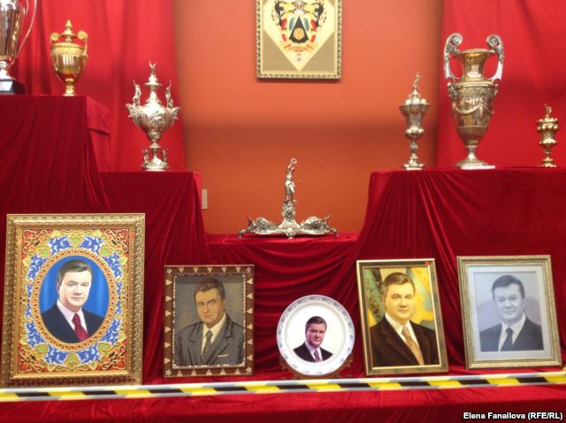 – Безусловно, есть приятные артефакты, парадоксальные. Портреты  Януковича из разных материалов, назовем это так. Один портрет сделан из злаков, пшена, манки, из кукурузы и фасоли. Второй портрет из янтарной крошки. Вышитый портрет; портрет, подаренный китайскими товарищами; просто печать на фарфоре, тарелка. Не говорю о родовом гербе Виктора Януковича, это вышивка и аппликация на ткани. Это самые поразительные и курьезные вещи здесь. Они заставили меня вспомнить выставку, она в 2010 году проходила напротив нас в Украинском доме, который когда-то был построен как музей Ленина, там сохранились фонды музея Ленина. На выставке, посвященной теме культа вождей, осмыслению этого явления под названием “ВождеЛения”, были показаны работы из фондов этого музея. Портреты Ленина из соломки, инкрустации из камней, металлов, злаков – это воспринималось мною как отзвук давно ушедшей эпохи. Но оказалось, что современные квазидиктаторы, люди, которые считают, что „государство – это я“, продолжают отождествлять себя с властью, они полностью наследуют эту чудесную традицию. Это лицо нашей постсоветской элиты, постсоветской власти, не оторвавшейся от прошлого, не порвавшей с замашками вождей эпохи тоталитаризма. Достаточно посмотреть зал, где находятся трофеи охотничьи, оружие, дипломы Януковича о том, что он лучший охотник года. Теперь, после страшных жертв конца февраля, это воспринимается специфически. Прекрасно понимаешь, что унаследованная от российских помещиков, российских землевладельцев любовь к охоте перешла во вкусы и поведение советской элиты, это оставалось любимым времяпровождением и наших “вождей”. Так мыслил правильный образ жизни человек, достигший абсолютно всего, вершины жизни, так мыслил и Виктор Янукович, очевидно. Если говорить о серьезных работах, то, безусловно, это украинские иконы и икона византийская, она считается византийской пока по документам, 14-й век. Есть несколько живописных полотен, которые действительно внушают доверие уже сейчас, – это и работа Айвазовского, и Поленов, одно из авторских повторений работы “Христос и грешница”, неплохой очень Кончаловский 1920 года исполнения. Есть работы, которые достойны музейных коллекций.