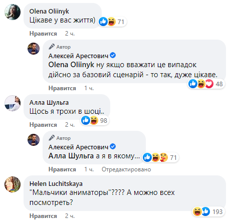"Цікаве у вас життя", "Щось я трохи в шоці", "Хлопчики аніматори? А можна всіх подивитися?", "Хотів влаштуватися на роботу до Арестовича. Передумав", "Що це?" , "Блен, що за порно-кринж", "іноді вам краще помовчати", - розкритикували його передплатники.