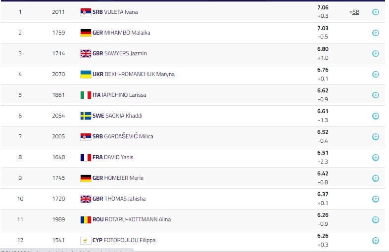 На жаль, лише четвертою стала Марина Бех-Романчук у секторі для стрибків у довжину серед жінок. До останньої спроби уродженка Хмельницької області йшла третьою з результатом 6,76 м, поступаючись лише сербці Іванні Вулеті (7,06 м) та німкені Малайці Міхамбо (7,03 м), але в останній спробі нашу співвітчизницю змогла «перестрибнути» британка Жасмін Сойєрс , "Полетіла" на 6,80 м.