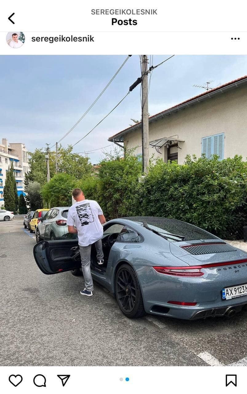 На інших знімках видно, що Колесник їздить Ніцце автомобілем Porsche 911, вартість якої становить не менше 200 тисяч євро. Машина, до речі, із харківськими номерами.