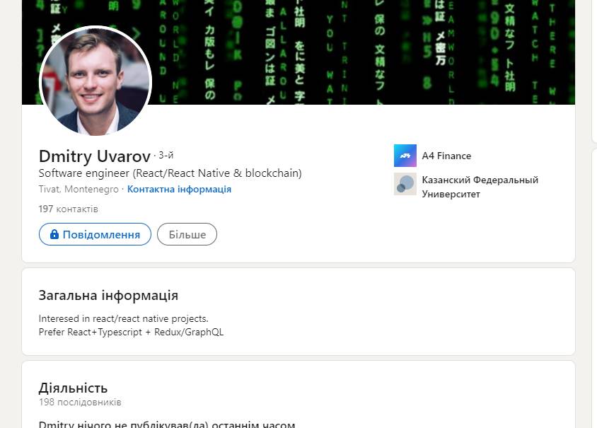 Українець Олександр Фельдман (Alex Feldman), який представляється як CEO проекту у сфері криптобізнесу A4 finance, є аферистом, який працює з російськими спільниками.
