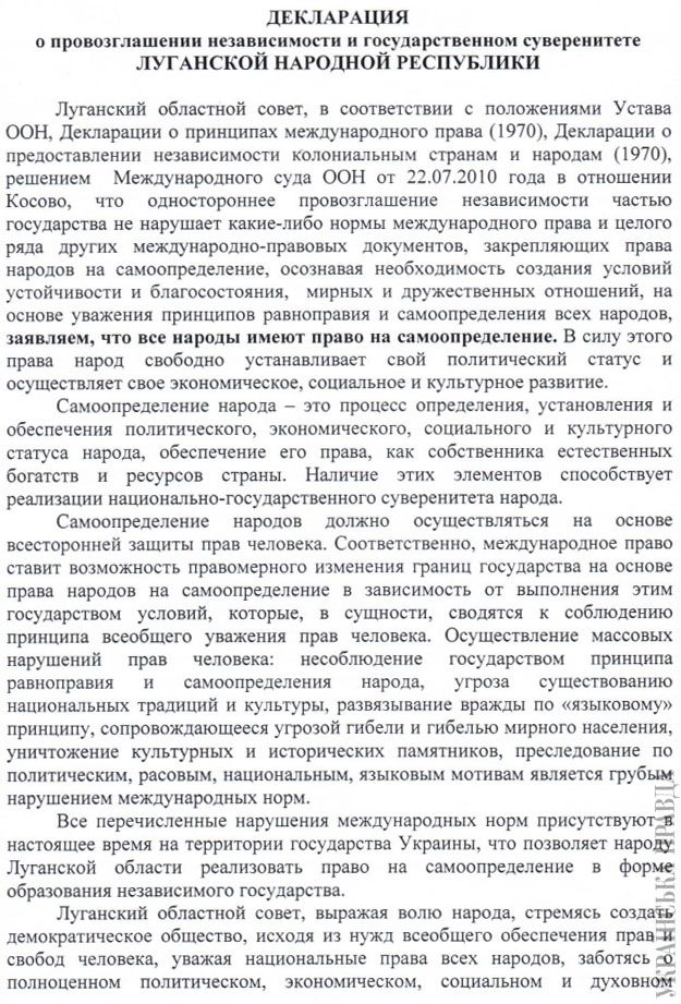 В Декларации о суверенитете Луганской народной республики самозванный облсовет должен сослаться на прецедент Косово и право народов на самоопределение.