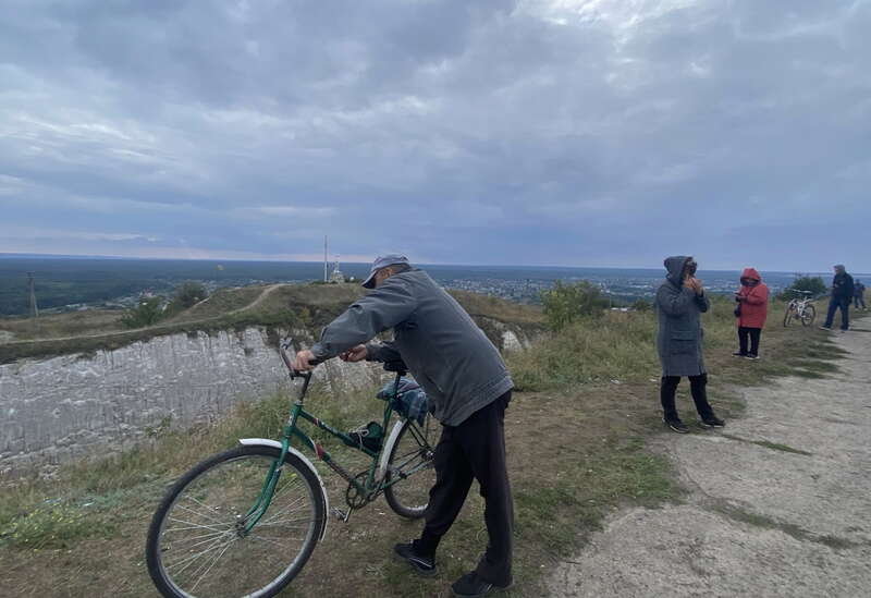 Під’їжджаємо до гори Кременець – найвищої точки цього району з крейдяними відкладами, телевежею та монументом на честь загиблих у Другій світовій війні. На Кременці – постійне скупчення людей: це єдине місце в Ізюмі, де ловить мобільний зв’язок.