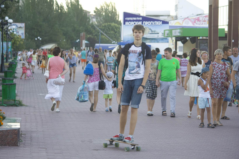 В Феодосии разгар курортного сезона. Туристов больше, чем прошлым летом, и это поразительным образом сказалось на крымчанах. Большинство перестало брюзжать, хотя раньше, когда в Крыму за год отдыхало 6 млн человек, находилось много недовольных качеством сезона.