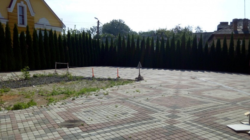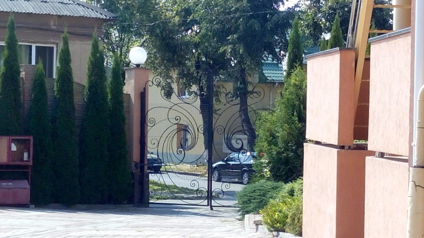 Щоб якось ужитися в такій тисняві, зліва від будівлі готелю зробили фіртку для неї, а автомобілі мали б під’їжджати до оселі через загальні ворота готелю, тобто через паркову.