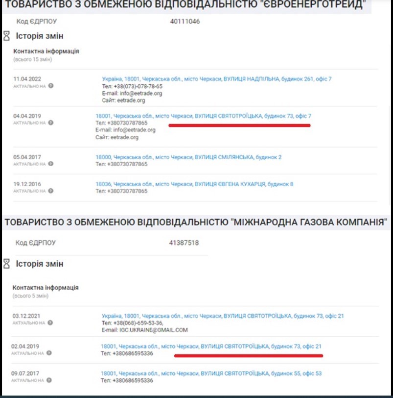 Далі взагалі було просто. Хоча ТОВ "Міжнародна газова компанія", як і ТОВ "Євроенерготрейд", зареєстроване на підставних осіб, підвели деталі. А саме – адреса реєстрації обох фірм: