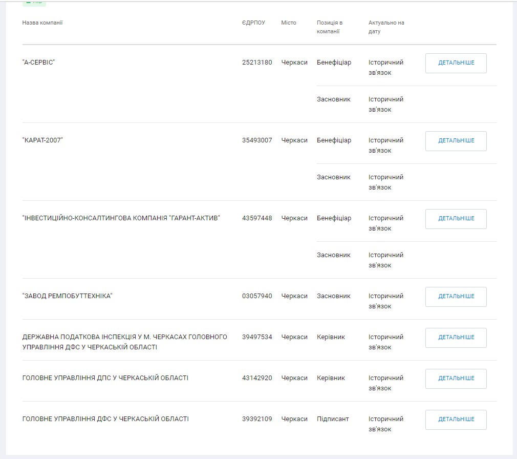 Далі ще цікавіше. Будівля у Черкасах на вулиці Святотроїцька, 73 належить якомусь Тарану Дмитру Петровичу, скромному працівнику податкових органів нашої країни. Заодно Таран володіє ще десятком компаній: