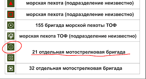 Позначку ромб у колі використовує 21 окрема мотострілкова бригада ЗС РФ, яка наступала на Лиман через Торське. Цілком ймовірно, що саме таку бачила дружина Олександра Дробота