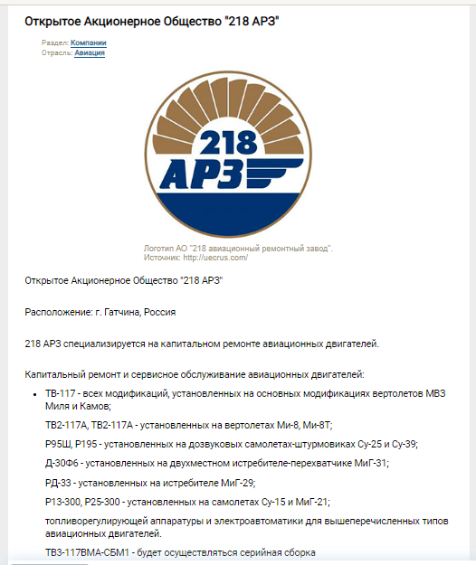 І третя фірма – це ООО «ВК-МС», але вже «Владимир Климов – Мотор Сич». Це теж ремонти різного рівня, наприклад – «Капитальный ремонт ВСУ АИ-9В с обязательной заменой комплектующих, не обеспечивающих межремонтный ресурс и межремонтный срок службы двигателя». АИ-9В – це допоміжний двигун в гвинтокрилі.