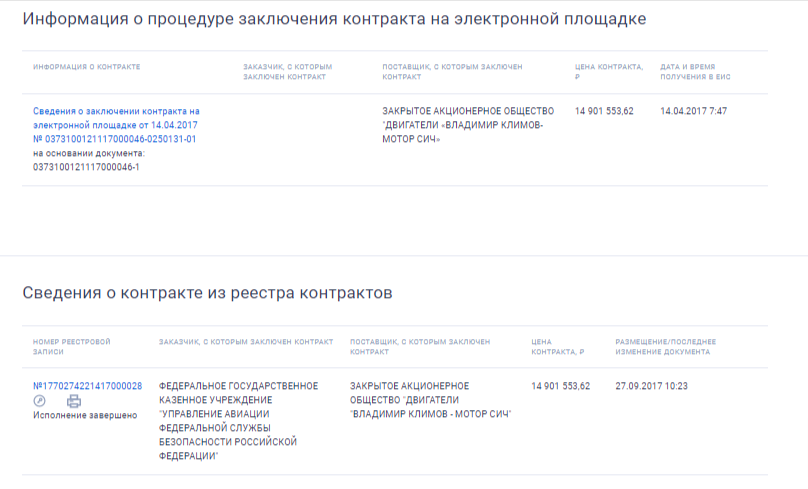 І цьому заводу ООО “Вертолетные комплексы и многофункциональные системы” вже з 2014-го року «відвантажили» різних деталей на 362 мільйони рублів / 133 мільйони гривень. Це не роботи, а саме масштабні постачання запчастин до двигунів, в тому числі – до ТВ-117, який виробляють на «Мотор Січі».