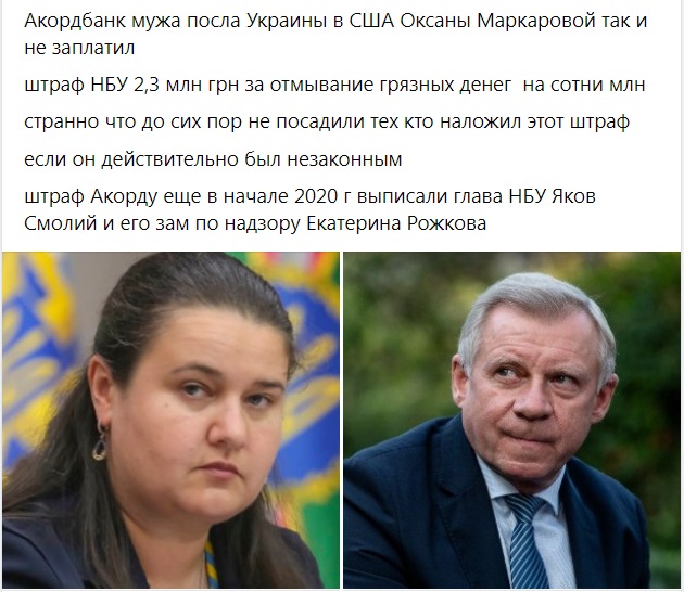 Скільки грошей вивели з України через «Аккордбанк» чоловіка Оксани Маркарової?