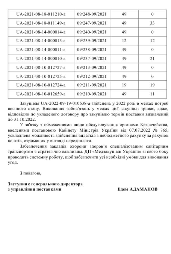 Держава уклала з улюбленим постачальником шість додаткових угод на продовження термінів поставок (остання продовжила до 21 жовтня 2022 року), чим «прокредитувала» улюбленого постачальника 100-відсотковою передоплатою. Плюс дозволила отримати нові підряди із підвищеною ціною «швидких».