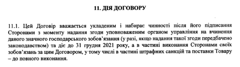 У договорі є пункт про його дію до 31 грудня 2021 року.