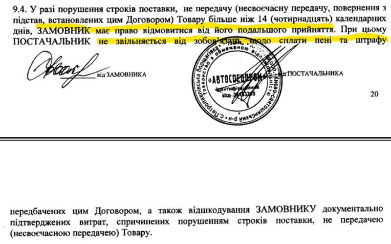Також у договорі зазначено, що замовник має право відмовитися від прийняття машин, якщо їхнє постачання спізнюється вже на два тижні. Додаємо до цього можливість один-два рази пролонгувати терміни з якихось обставин, що справді можуть бути на різдвяні свята.