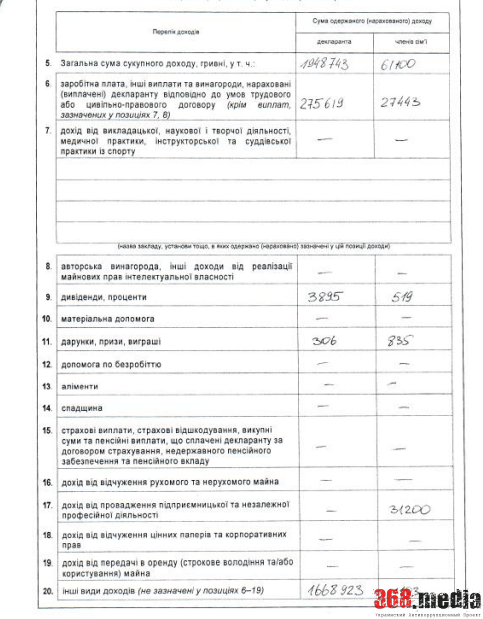 На должности начальника госпредприятия Крук заработал всего лишь 275,6 тыс. гривен. Кроме того, чиновник получил около четырех тысяч гривен в качестве дивидендов.