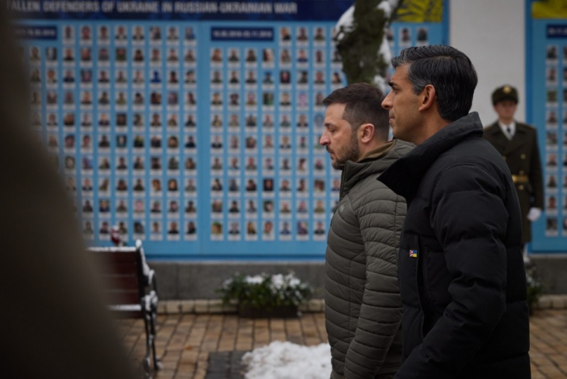 Під час прогулянки Зеленський та Сунак ушанували пам’ять українських героїв та оглянули виставку знищеної техніки росіян.