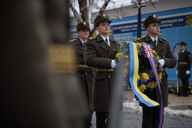 "Лідери поклали квіти до Стіни пам’яті загиблих за Україну, що біля Михайлівського Златоверхого монастиря, і вшанували пам’ять українських воїнів хвилиною мовчання", - пише пресслужба.