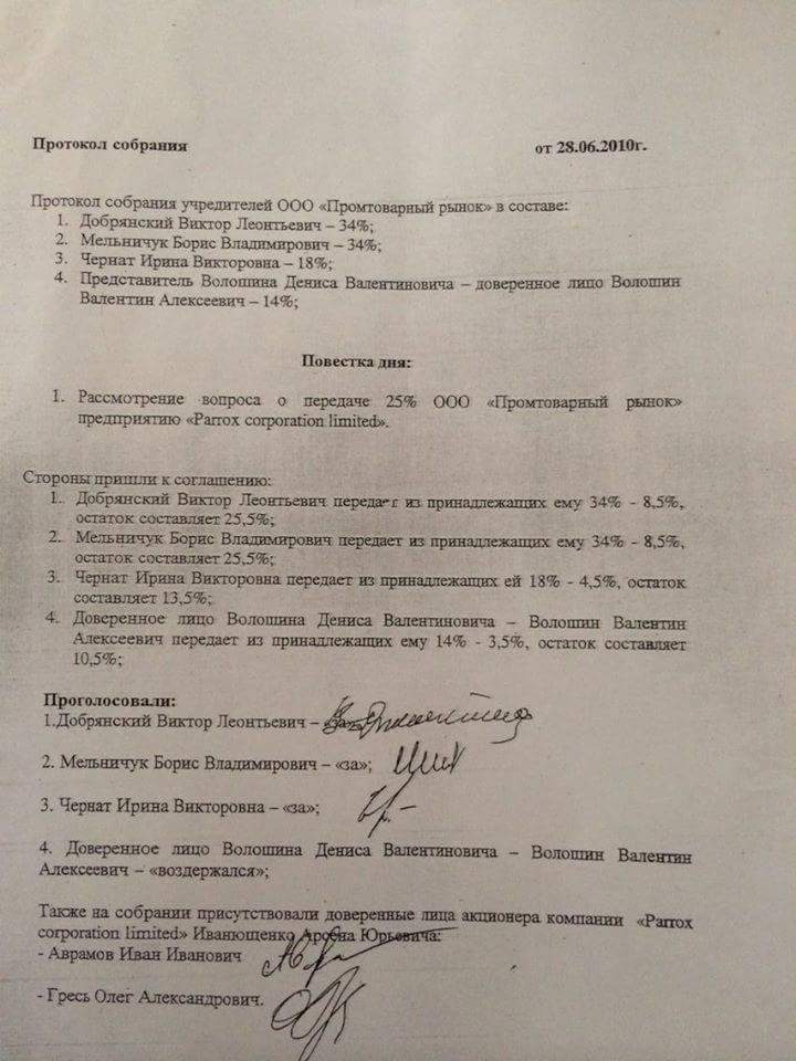 Однак повернемося до ринку та його власників. Про те, що Юрій Іванющенко мав частку у ТОВ «Промтоварний ринок», говорить наступний документ: