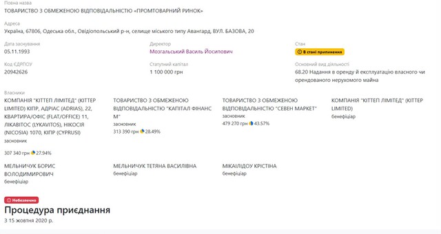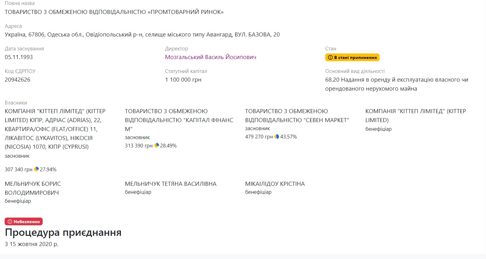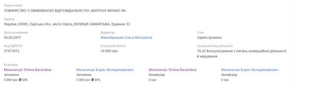 За ТОВ «Капітал фінанс М» стоять Тетяна та Борис Мельничуки, які мали частки і у ТОВ «Промринок»: