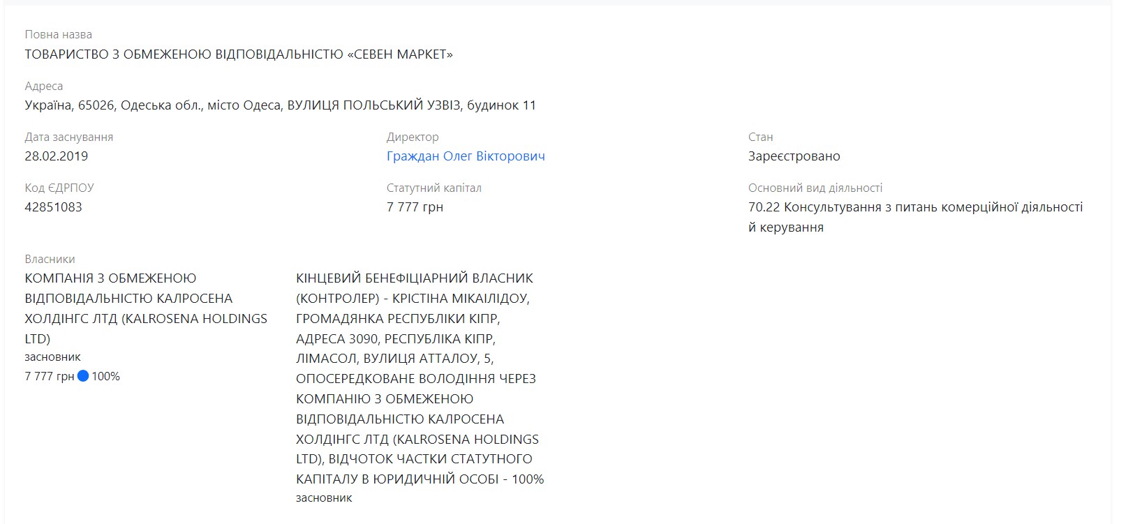 Ще один співвласник – ТОВ «Севен маркет» – знову закритий офшором: