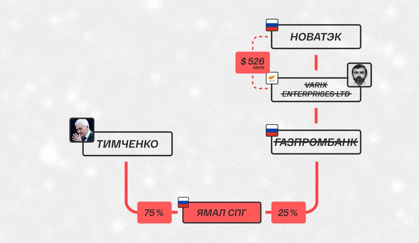 Таким чином, перепродаж «Ямал СПГ» приніс $1,12 млрд, а всього з рахунків кіпрських юросіб було виведено $1,4 млрд.