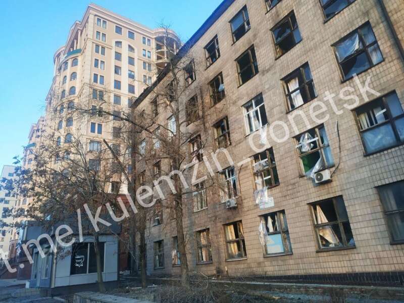 Фіксуються руйнування у центральному районі Донецька внаслідок обстрілу з РСЗВ.