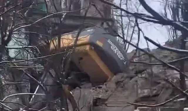 В Ірпені під час знесення пошкодженого будинку перекинувся екскаватор. Відео dqxikeidqxidqeant