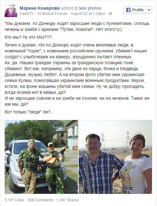 Мне плевать, кто вы, какие у вас заслуги и всякое такое. Вы просто туристы. Вам показали всё, что хотели, и больше ничего. Вы не видели никакое местное население, потому что ему в Стране Советов на вас насрать; оно занято выживанием, стоянием в очередях и получением карточек на хлеб, а не зависанием в кабаках и беседами с Захарченко. И не важно, как называется Страна Советов – «ДНР», СССР или КНДР. Вы просто марионетка в вертепе чекистов. Избавьте мир от описания своих переживаний и от своих выводов – от них за версту несёт писаниной Притта, которая протухла ещё даже до того, как он получил Сталинскую премию.