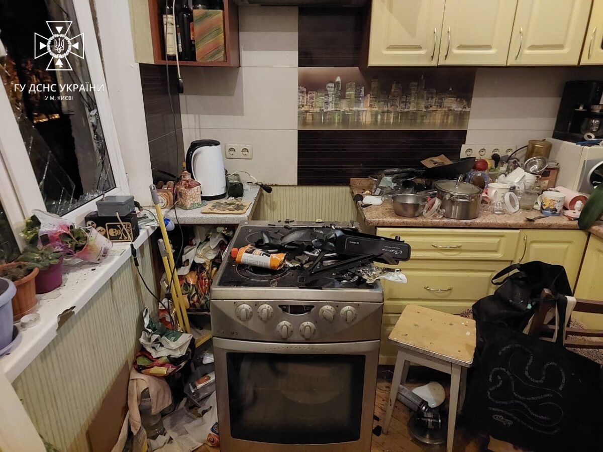 Також, внаслідок вибуху пошкоджено віконні рами квартири, меблі та побутову технікуна кухні.