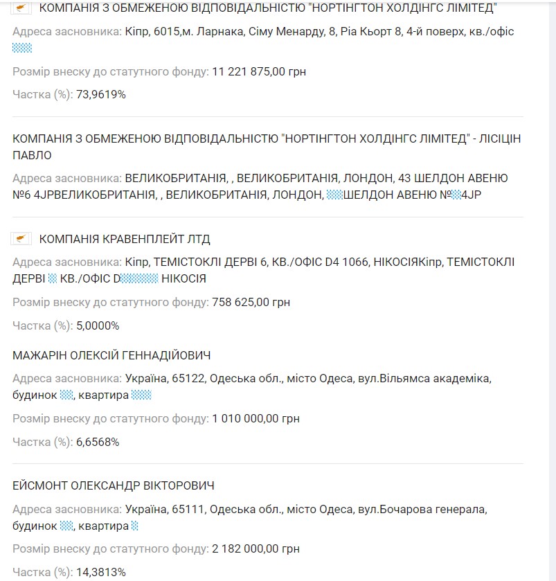 Кінцевим бенефіціаром "Нортінгтон Холдінгс Лімітед" (Northington Holdings Ltd.) виступає росіянин Павло Лісіцин. Раніше кінцевим власником кіпрської компанії Northington Holdings Ltd., була кіпрська юридична фірма Georgiades & Pelides LLC. Засновниками цієї юридичної компанії є два кіпрські юристи – Маркос Георгіадіс та Фівос Пелідіс, які спеціалізуються на створенні офшорних компаній для країн пострадянського простору.