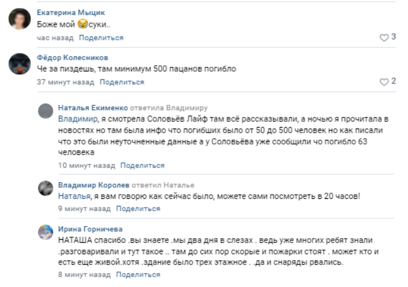 Особливе обурення макіївчан викликало повідомлення міноборони росії про 63 загиблих. «Допишите к 63 ноль, чтобы это было правдой», пишуть у соцмережах.
