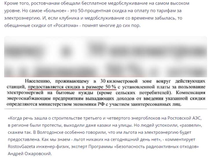 Але обіцяли- висохло, ця народна приказка народженна саме у срср, то обіцяні знижки від «Росатому» нарід так й не дочекався, але досі обговорює по Ростовській області.