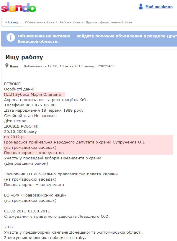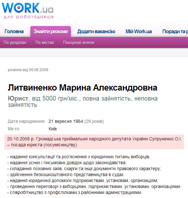 Згідно з публікаціями на сайтах працевлаштування, і Литвиненко, і Зубаха були помічниками... народного депутат Олександра Супруненка.