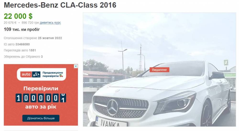 Цікаво, що Плантовська фотографувалася на капоті машини Mercedes-Benz CLA (2016) з номерним знаком IVANKA. Згодом саме це авто намагалися продати за 22 тис. доларів. Постає питання, звідки у капітана ДПСУ гроші на купівлю такого авто?