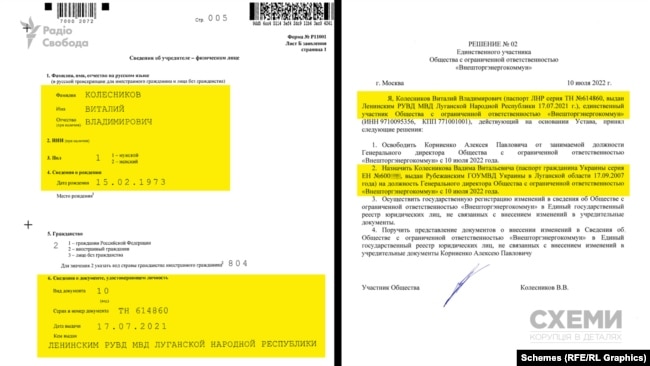 Завдяки цим документам «Схеми» встановили ще один факт: після виїзду з України начебто на лікування Віталій Колесников отримав «паспорт» угруповання «ЛНР». Такі посвідчення Україна вважає незаконними.