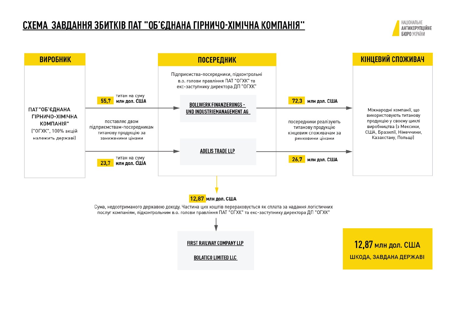 Насамперед, саме вона була серед фігурантів розслідування НАБУ, яке виявило злочинні схеми із продажу продукції ОГХК її колишніми менеджерами Р.Журило та Ю.Перцевим, які спричинили державі фінансові збитки на суму 300 млн. грн.