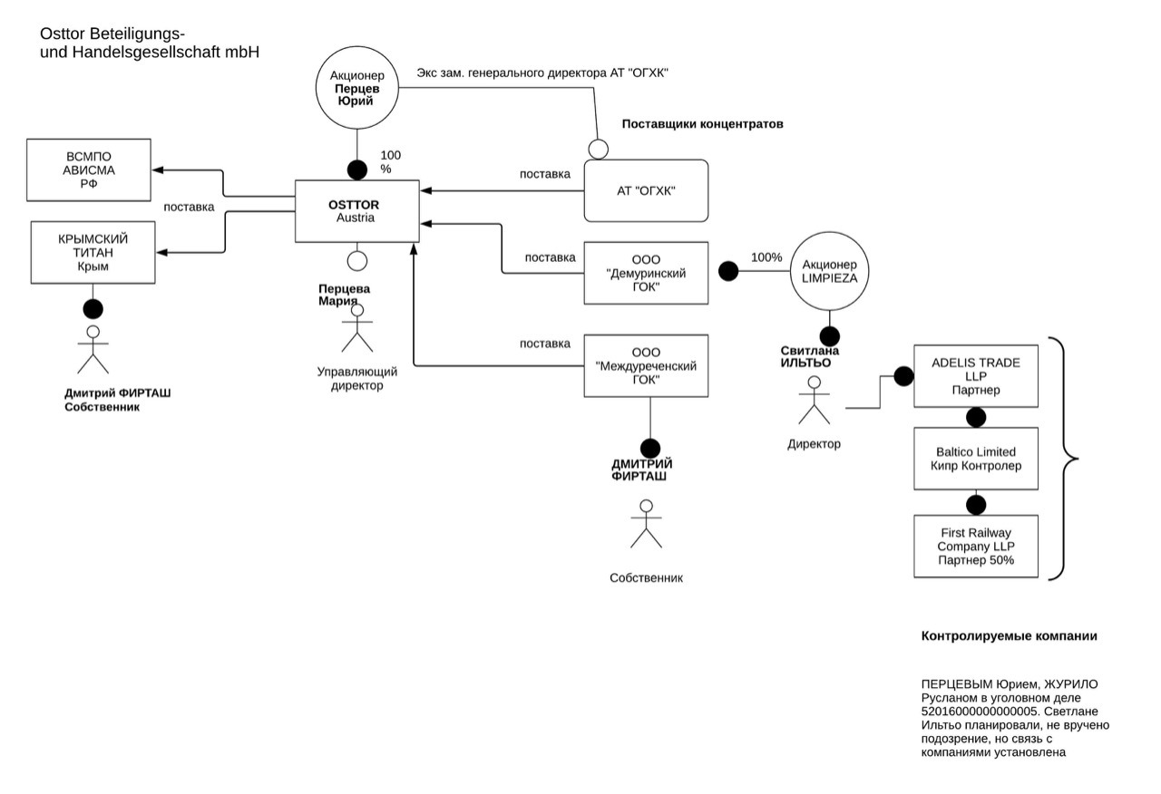 Має прямі та опосередковані багаторічні зв’язки із громадянами України та РФ, які, у свою чергу, мають безпосереднє відношення до титанового бізнесу та постачань титанової сировини на підприємства ОПК Росії;