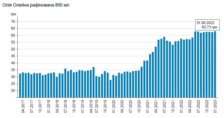 Втім, різких перепадів вартості продукту не спостерігалося вже давно. Так, на Олейну востаннє значно змінювали ціну у червні, коли вона подорожчала з 58,5 до 62,73 грн.