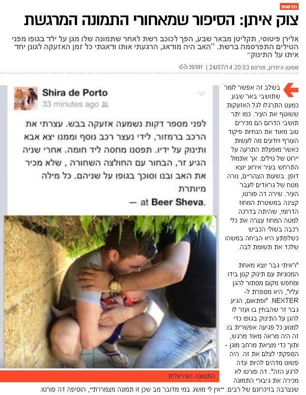 «Элиран Фитусси из Беэр-Шевы, прикрывая ребенка в июле 2014 года во время ракетных обстрелов террористов из Газы, даже не догадывался, что российская пропаганда через год переселит его в Донецк, сделав «героем Донбасса"», - отметил журналист.