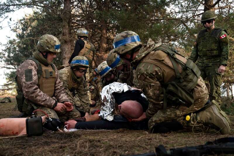 "Військовослужбовці Збройних Сил України в рамках базової загальновійськової підготовки у Великій Британії вивчають застосування загальних принципів домедичної допомоги під час ведення бойових дій в урбанізованій місцевості під керівництвом інструкторів 3-го батальйону Канадської легкої піхоти Принцеси Патриції 1-ї Канадської механізованої бригадної групи 3-ї Канадської дивізії Збройних Сил Канади в рамках операції UNIFIER - UK", - заявили в генштабі.