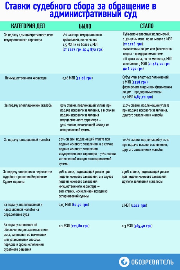 Кроме того, согласно закону, с 1 сентября отменяются льготы по уплате судебного сбора для государственных органов (органов прокуратуры, органов Государственной фискальной службы Украины и др. За подачу исковых заявлений, апелляционных и кассационных жалоб указанные органы будут платить судебный сбор на общих основаниях.