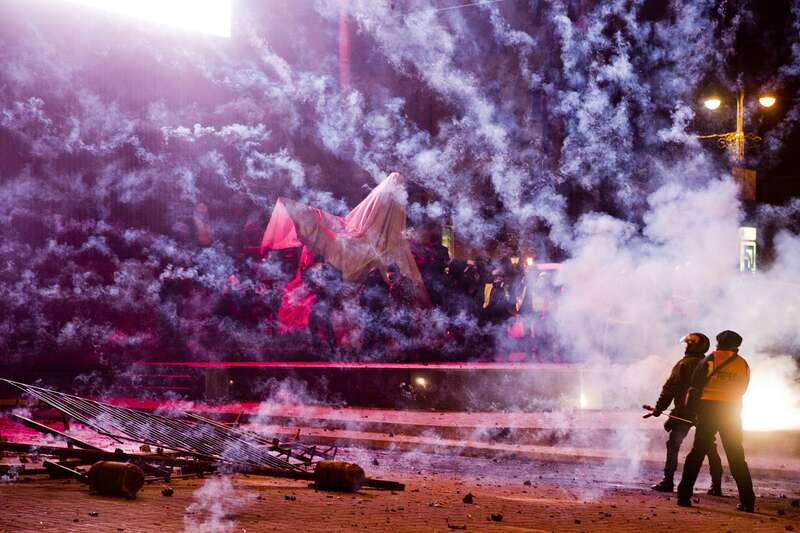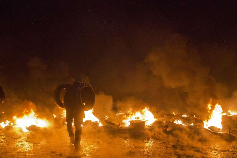 Зіткнення між протестувальниками та силовиками на вулиці Грушевського під час Євромайдану, січень 2014 року. Фото: Євген Фельдман, Ґрати