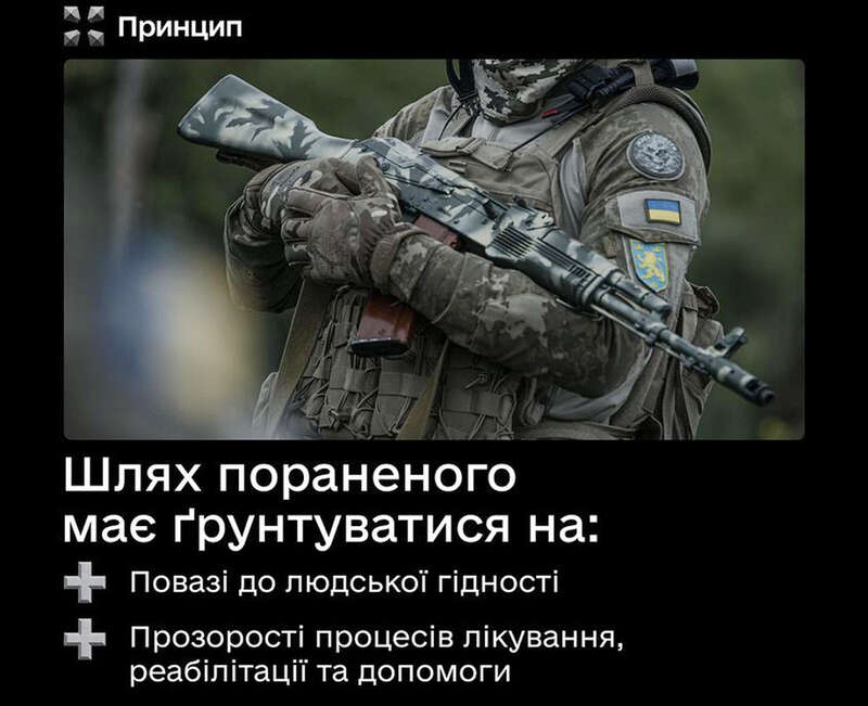 «У цій назві ми втілили нашу мету зробити повагу до військових основою усіх взаємодій держави із бійцями. Цього нині бракує», - написав Масі Найєм. І проанонсував, що незабаром ГО випустить дуже важливий продукт, покрокову інструкцію, яка розкладе по поличках, що робити після поранення.