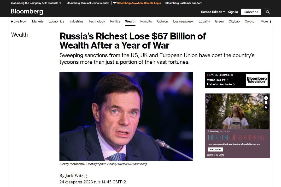 За рік війни російські мільярдери втратили 20% свого статку. Bloomberg опублікував рейтинг
