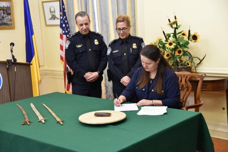 На території Посольства України в США відбулася офіційна церемонія повернення Україні культурних та історичних цінностей. Їх затримали у вересні минулого року митно-прикордонною службою США при спробі незаконного ввезення з РФ.