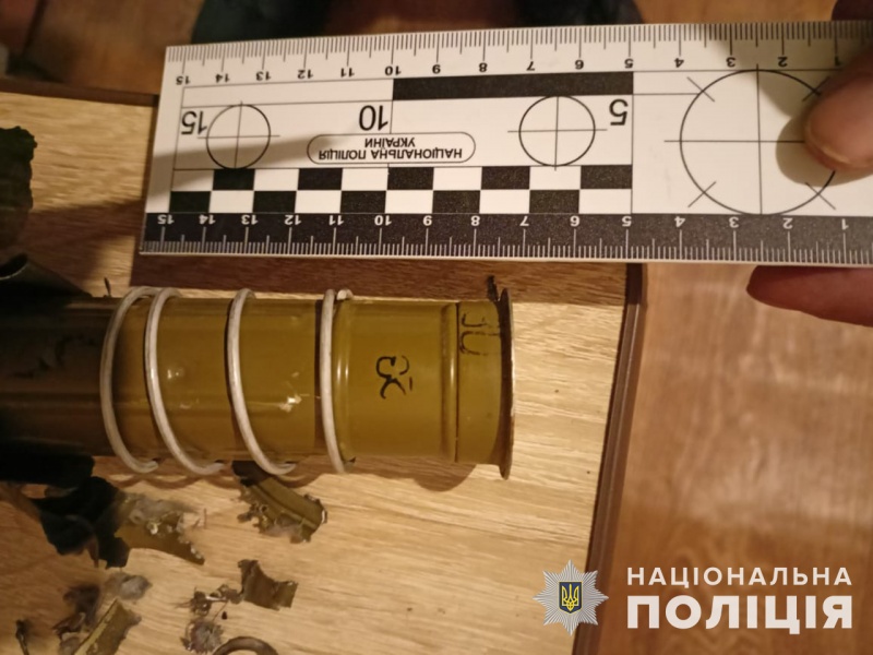 Оглянувши місце події та залишки вибухонебезпечного предмета, правоохоронці попередньо встановили, що це - руків‘я від протитанкової кумулятивної гранати РКГ-3.
