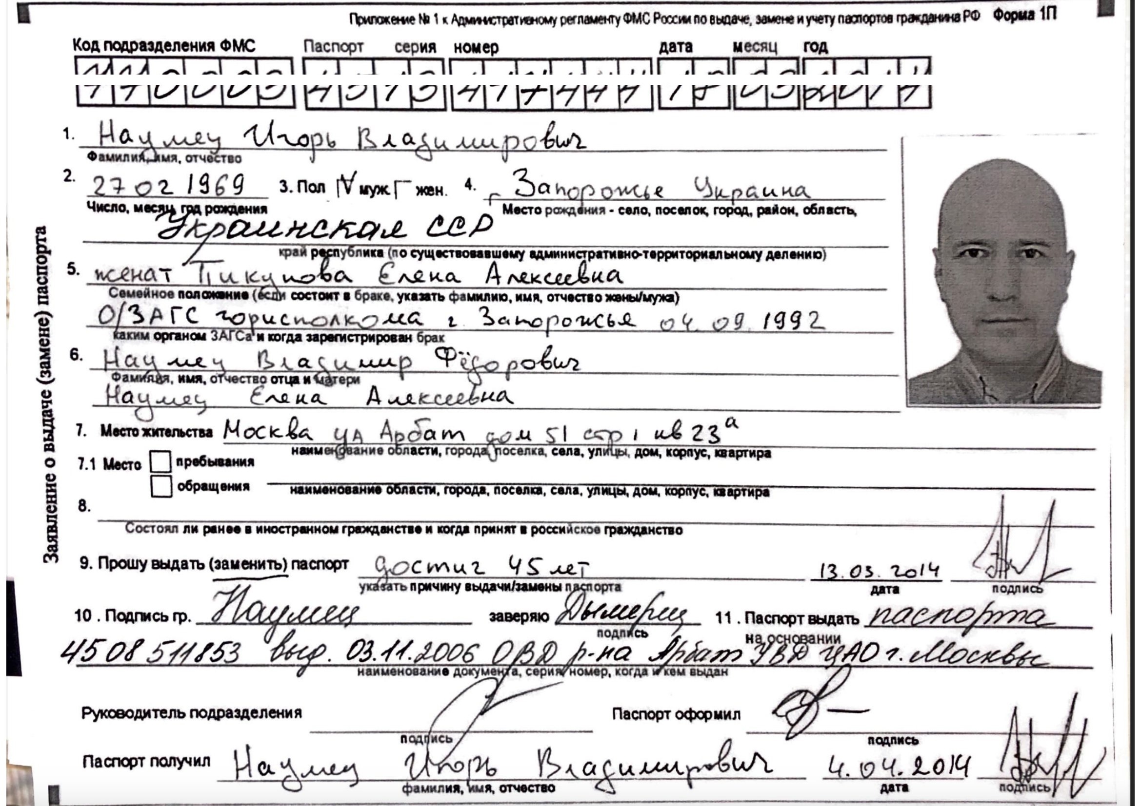 Щодо Ігоря Наумця тривали тривалі розслідування, але тепер в руки нашої редакції потрапили докази наявності російського громадянства у бізнесмена. Зокрема, мова йде про паспорт Росії Наумця та його дружини Олени Наумець.