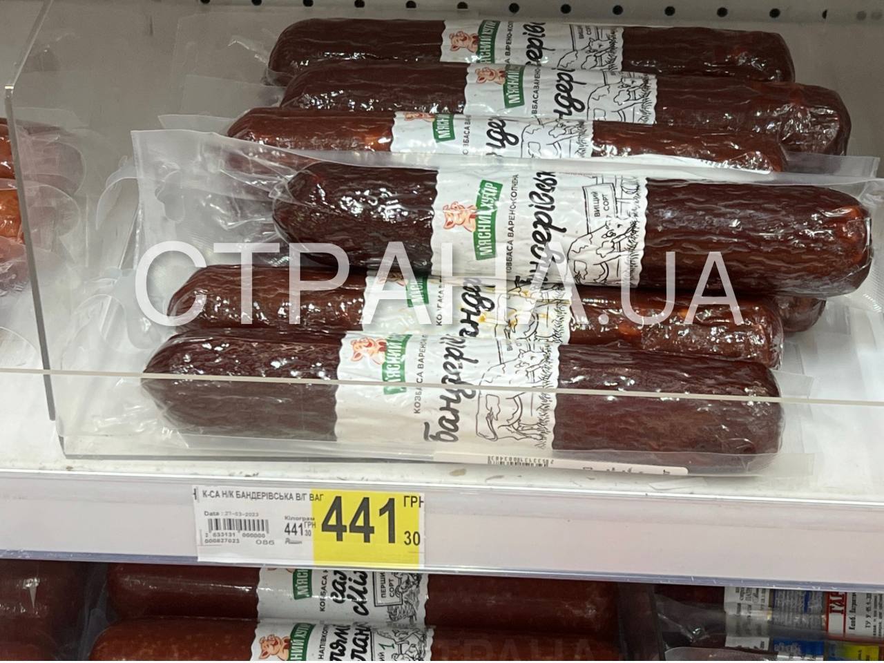 Так, у київських супермаркетах продають ковбасу під назвою "Бандерівська" за 441 грн/кг та "Патріотична" по 173 грн за штуку.