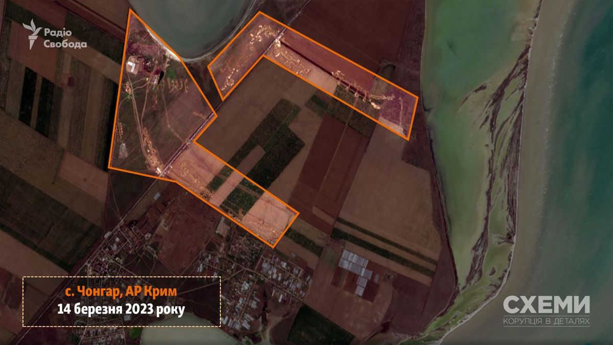 У тимчасово окупованому Криму Росія готується до оборони та масово будує захисні споруди. Російські окопи вже видно за Чонгаром, біля російського пункту пропуску "Армянськ", в районі Перекопського валу.